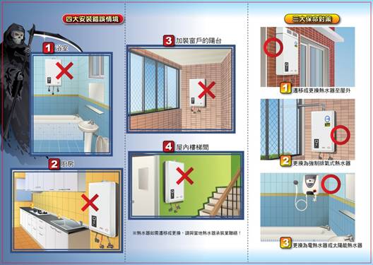 5.「請勿連續使用燃氣熱水器過久,造成氧氣不足導致一氧化碳中毒」